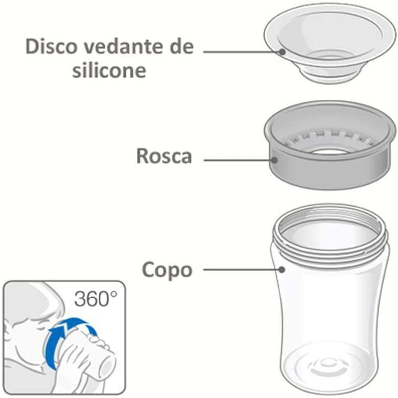 O Copo Nuk Evolution Magic Cup 360° Girl é recomendado para facilitar o momento de transição do copo com bebedor para o modelo convencional. Conta com um sistema 360º que permite a ingestão de líquido por toda a borda sem esforço e sem derramar facilitando processo de transição. Desenvolvido na Alemanha possui material resistente livre de BPA e com uma estrutura antivazamento. Além de ser super prático e inovador o Copo Nuk Evolution Magic Cup 360° Girl conta com sistema intercambiável possibilita que o bebedor e a rosca sejam trocados entre os frascos da linha NUK Evolution.