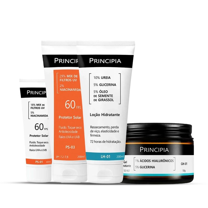 Kit Principia Facial Completo com Protetor Solar FPS 60 + Hidratação Intensiva (4 Itens)