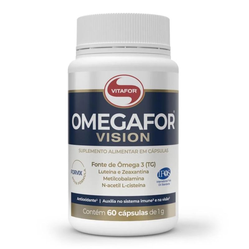 O Omegafor® Vision Vitafor é um suplemento alimentar à base de óleo de peixe (fonte de Ômega 3 na forma TG – triglicerídeos), enriquecido com vitaminas A, B12 e E, além de cisteína (NAC), taurina, luteína e zeaxantina. Sua fórmula foi desenvolvida para atuar de forma sinérgica, auxiliando especialmente na saúde da visão, no sistema imunológico e na proteção antioxidante.
