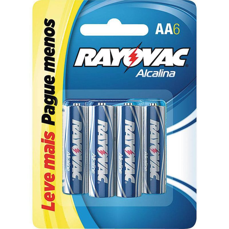 Pilha Alcalina Rayovac AA Leve mais Pague menos 6 Unidades
