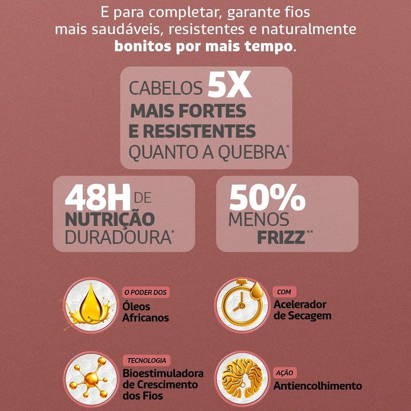 - Fortalece os fios e estimula o crescimento contínuo.